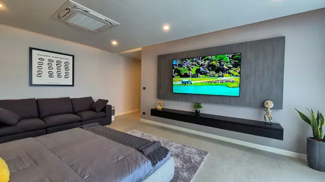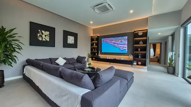 • 5-star designer outdoor furniture including 3-piece sofa set and 6-seater dining set • 98 inch LG TV in living room